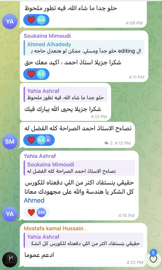 الاشتراك في المجتمع هيكون مجاني تمامًا مدى الحياة بعد انضمامك للكورس، وهتحصل خلالهم على مكالمات مباشرة مع أحمد الحديدي ومجموعات المجتمع الأخرى لدعمك في رحلتك